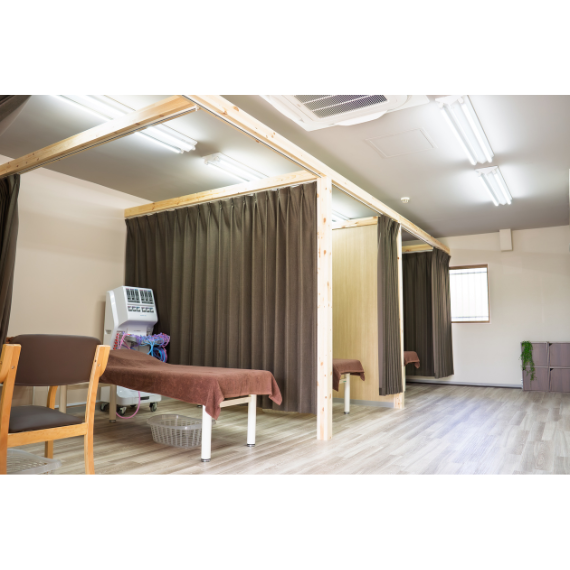3床目のベッドは自由診療用に壁で仕切られているので、より周りを気にせずに施術を受けることができます。